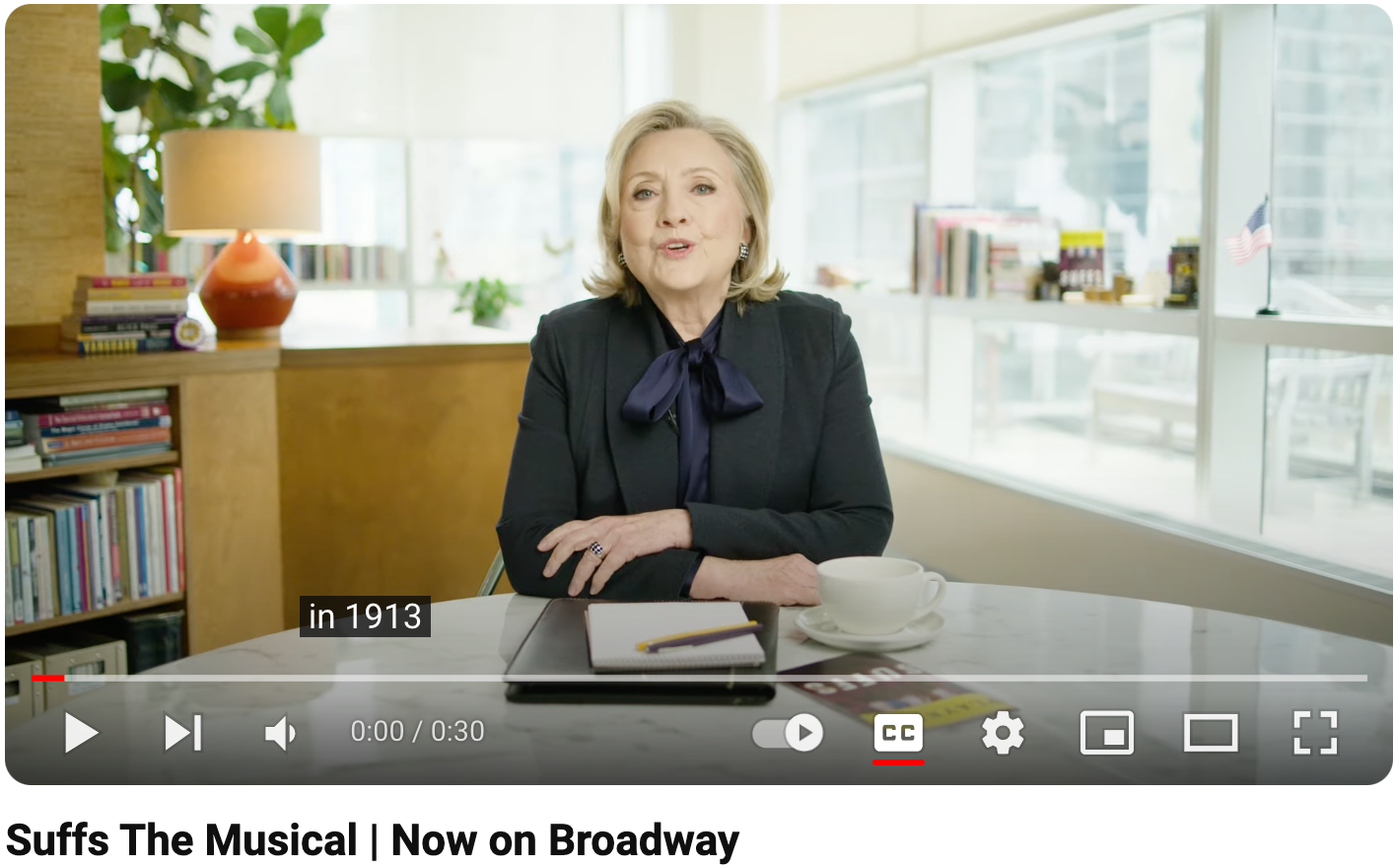 Even the promo video featuring Hillary Rodham Clinton (producer) starts with the line, “In 1913 women in this country were not allowed to vote…” then a variety of cast members explain the suffragist movement as a political fight involving big hats and uncomfortable shoes. It ends with Clinton telling us that “the road to equality is long which is why we keep marching but in way more comfortable shoes.” Clinton is at her best here, relaxed, well-lit, and congenial.
