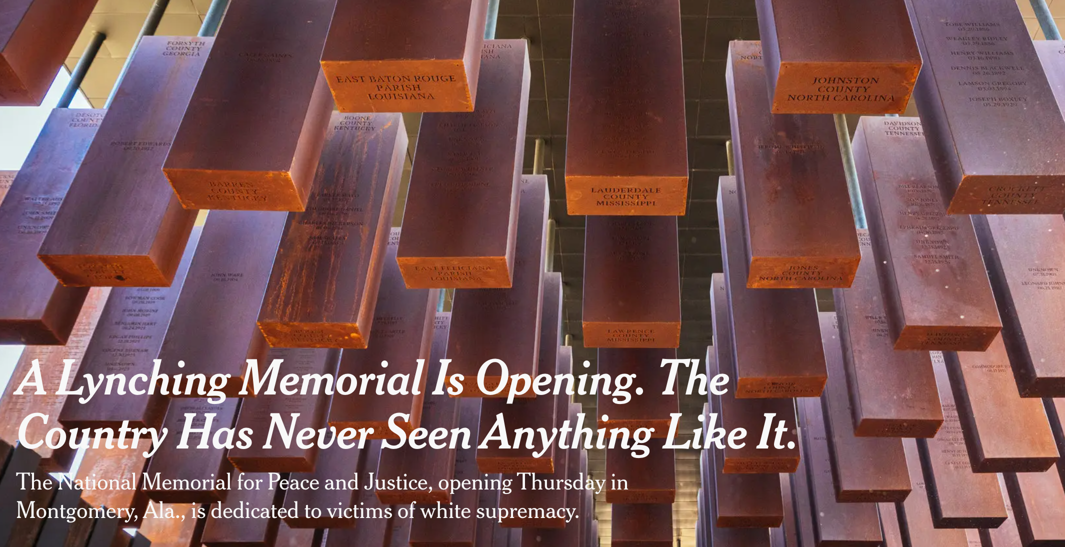 According to the Equal Justice Initiative, “terror lynchings,” peaked in the period between 1880 and 1940. The practice ended the lives of African American men, women, and children. In 2018, civil rights attorney Bryan Stevenson, founded the Equal Justice Initiative and established the nation’s first ever lynching memorial dedicated to honoring those who were murdered in this way, and when it opened the New York Times declared the “country has never seen anything like it.”