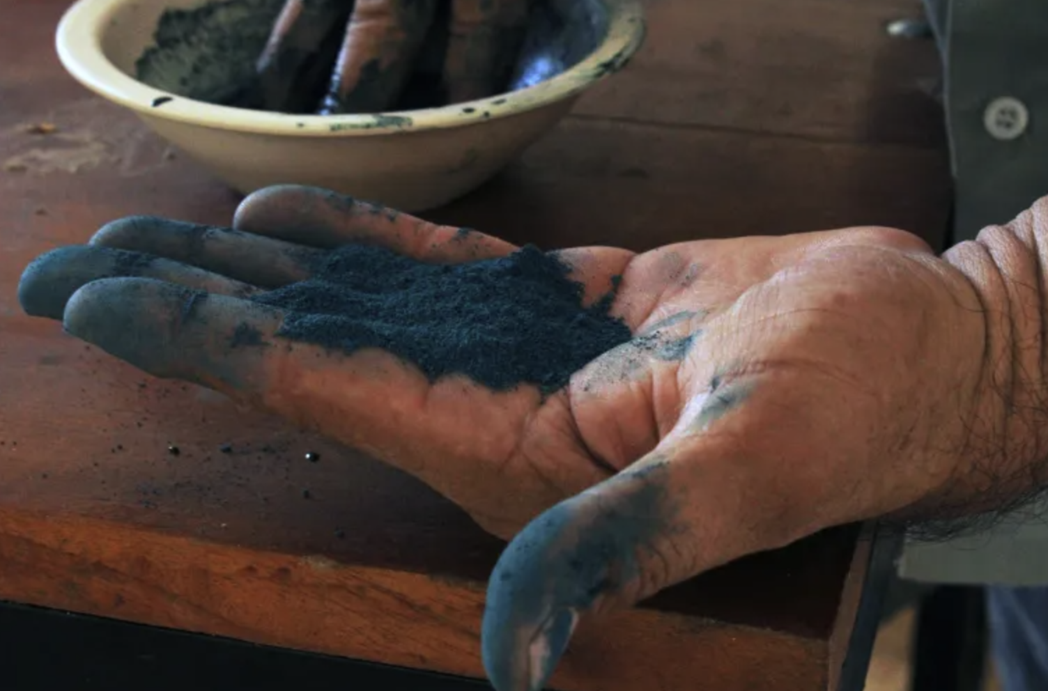 This article (from Al Jazeera) tells the full story of how the technology behind creating the color was recovered. It was in 1931 when archaeologist HE Merwin first found “a new pigment” on murals within the Temple of The Warriors at Chichen Itza. It was not until the 1950s that a process known as “powder diffraction analysis” revealed the Maya blue pigment had been made by mixing clay, palygorskite (a rare fibrous clay) and indigo (the plant “indigofera”). In 1993, Mexican art historian and chemist Constantino Reyes-Valerio published a recipe to recreate the color using palygorskite, montmorillonite (a soft clay) and indigo leaves. It was this recipe that enabled Luis May Ku (pictured above) to reverse engineer the formula for making it the way his indigenous ancestors had done, which he announced on social media in January 2023 that researchers in Italy and Mexico had replicated the process and validated it. For the first time in six centuries, this color that was lost has been recovered and with it, some enchantment.