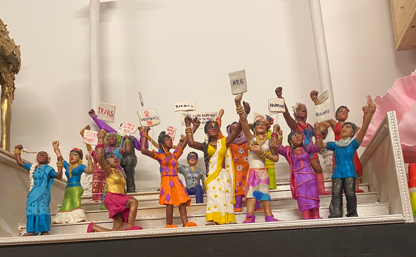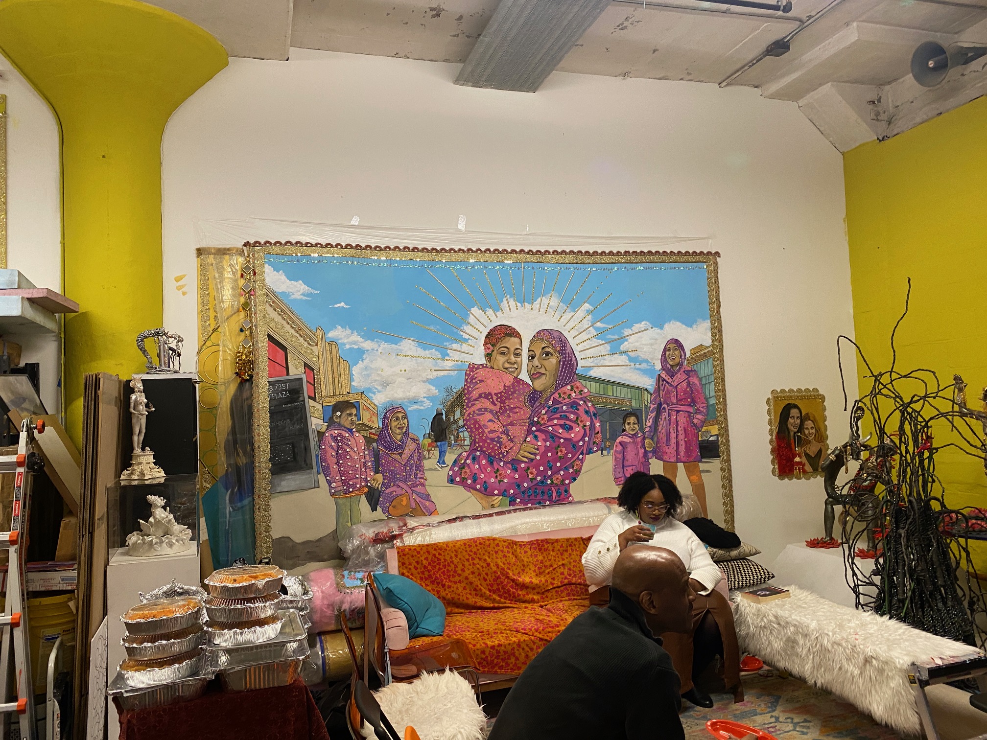 If you’re still feeling anxious about the state of the world, you can take your power back by finding ways to ground yourself. Turn off screens, touch grass, get your body moving, talk to real people face-to-face, listen to music that soothes you, cook or bake food that nourishes you, walk your dog, play a board game that makes you giggle, craft something, make some art, meditate, read a book, keep a journal, volunteer to teach someone to read, write a letter to someone who is incarcerated, join a protest march. Or, go to a friend’s birthday party in an artist’s studio, which is what I did last night just before the snowfall (images above and below from artist Pyaari Azaadi). These are all ways to detach from the doom on offer in our world and connect to your body, to other people, to the planet in ways that are meaningful, and we’ll need lots of these in what’s to come.