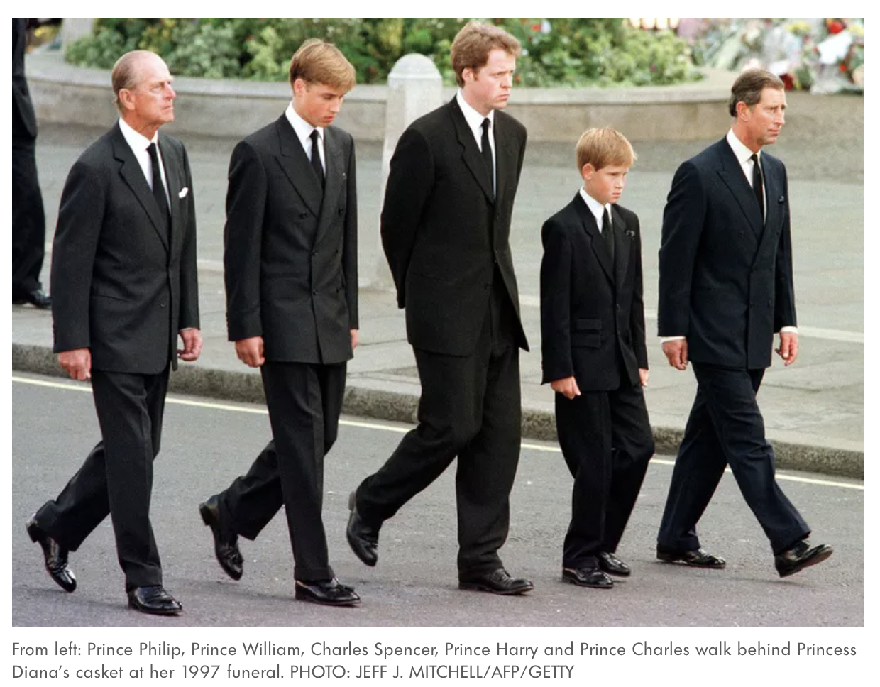Of being forced to walk behind his mother’s coffin in the funeral cortege, Harry says: “Why did the adults do that to us?” Uncle Charles (Diana’s brother) is apparently the only adult who objected, saying “it’s barbaric,” but no other adults intervened on their behalf that day.